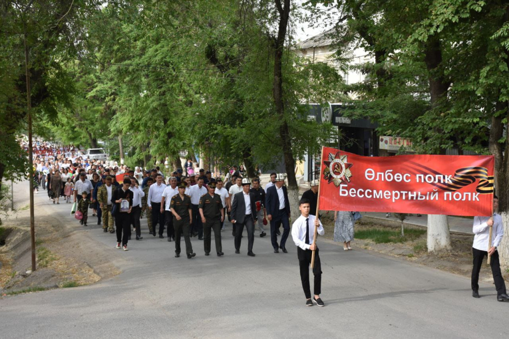 Майлуу-Суу шаарында 9- май Улуу Ата Мекендик Согуштагы Жеңиштин 80-жылдыгы белгиленип, ,,Жениш" скверинде Митинг-реквием жана “Эскерүү оту” эл аралык патриоттук акциясы, Өлбөс полк уюштурулуп өттү.