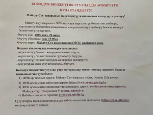 Майлуу-Суу шаарынын 2026-жыл үчүн жергиликтүү бюджеттин долбоору жана жергиликтүү бюджеттин аткарылышы жөнүндө коомдук угуулардын өткөрүлүшү тууралуу