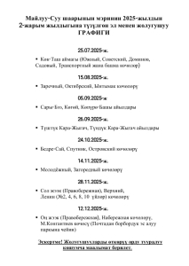 Майлуу-Суу шаарынын мэринин 2025-жылдын 2-жарым жылдыгына түзүлгөн эл менен жолугушуу графиги