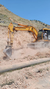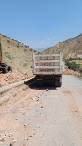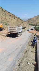Майлуу-Суу шаарынын Верхняя көчөсүнөн тартып Көпүрө-Башы айылына чейин Кыргыз Республикасынын транспорт жана коммуникациялар министрлиги тарабынан 2025-жылга түзүлгөн иш-мерчеминин негизинде авто унаа жолун кеңейтуу менен жаңы асфальт төшөө иштери жүргүзүлүп жатат.