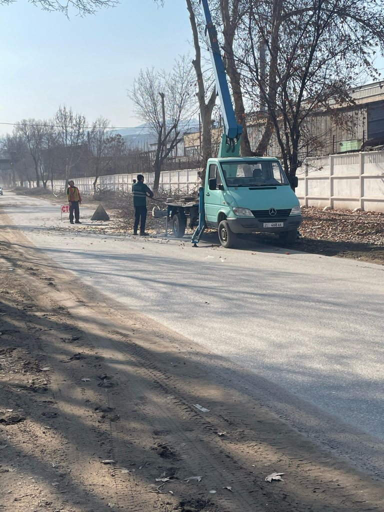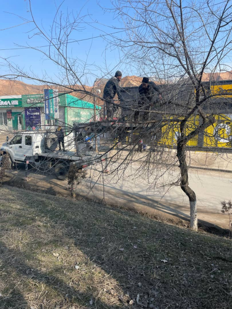Кыргыз Республикасынын жаратылыш ресурстары, экология жана техникалык көзөмөл министрлигинин Жалал-Абад регионалдык башкармалыгы “Майлуу-Суу Тазалык” муниципалдык мекемеси Майлуу-Суу шаарынын аймагында комиссия тарабынан аныкталган илдет түшүп, курт жеп бутактары сынып түшө баштаган иликтөө актысында көрсөтүлгөн дарактардын сынган жана куургаган бутактарын кесип санитардык тазалоо жумуштары аткарылып жатат.