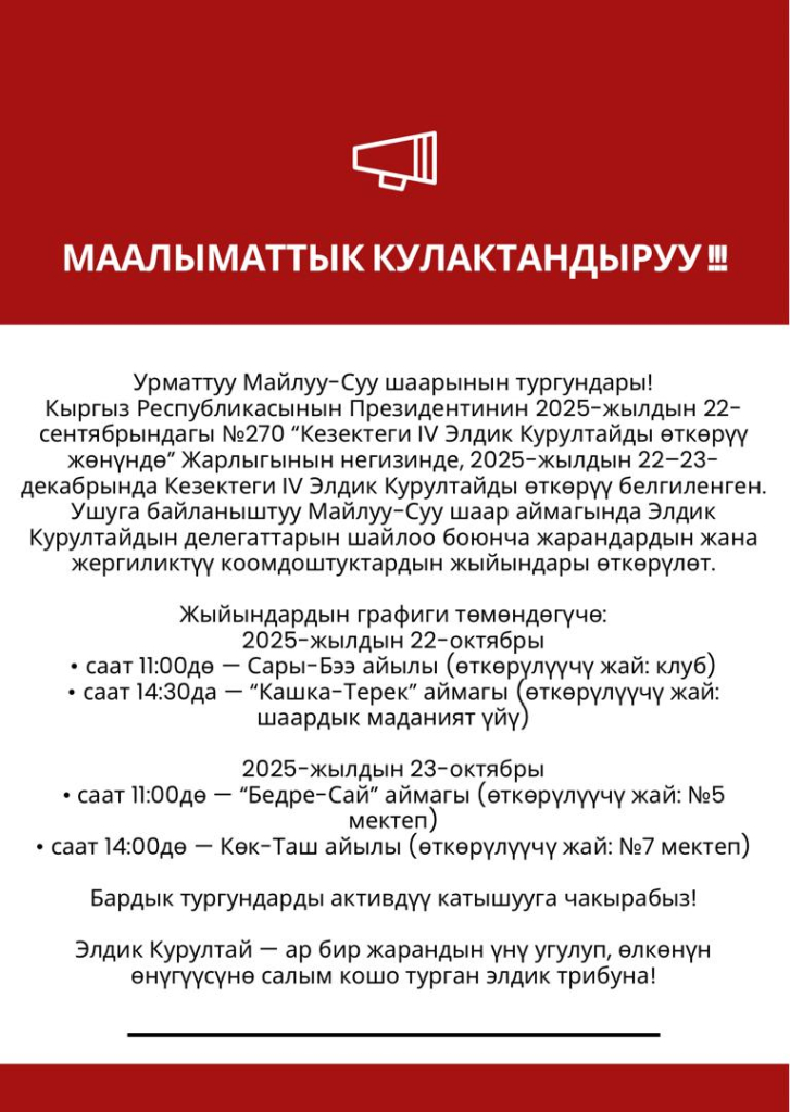 Ураматтуу Майлуу-суу шаарынын тургундары!