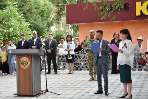 Иш-чарага шаар мэри А.Жумаев, шаардык Кеңештин төрагасы Д.Атамурзаев, Аскер комиссариатынын комиссары подполковник А.Осмонов, 12544 аскер бөлүгүнүн командири майор Кочкоров А., Жаштар комитетинин төрагасы Д.Муратбеков жана мекеме уюмдардын жетекчилери, шаар тургундары катышты.