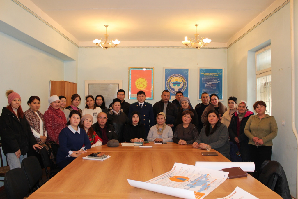 Күн тартибинде ЭСКМ башкармалыгынын ишмердүүлүгү, үй бүлөдөгү зомбулук боюнча окуяны чагылдыруу, талкуу, сунуш киргизүү каралды.