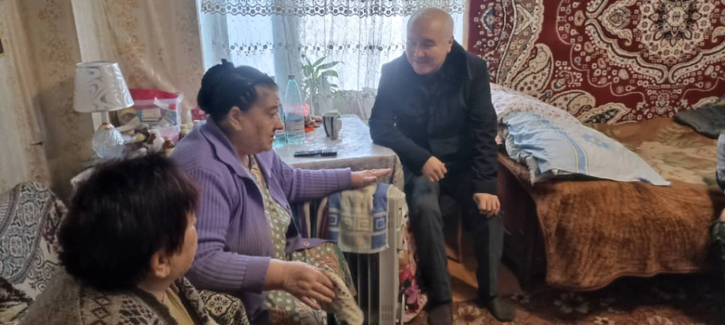 Майлуу-Суу шаарында улгайган жарандарды колдоо жана коргоо боюнча акция уланууда, акциянын алкагында шаардын мэри Н.Умаров улгайган карыялардын үйлөрүнө барып колдоо көрсөтүү