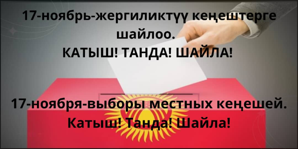 Кыргыз Республикасынын Президентинин 2024-жылдын 6-сентябрындагы №256 Жарлыгы менен 2024-жылдын 17-ноябрына дайындалган КРнын жергиликтүү кеңештеринин депутаттарын шайлоого активдүү катышыңыздар!