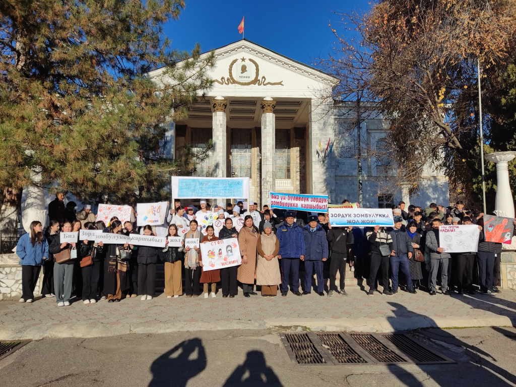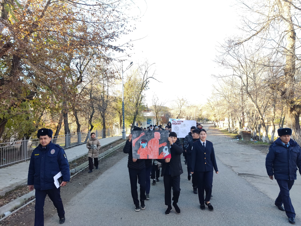 2024-жылдын 27-ноябрында Майлуу шаарында ,,Үй бүлөлүк зордук зомбулукка каршы 16 күн" өнөктүктүн алкагында жөө жүрүш жана тегерек стол иш чара уюштурулду.